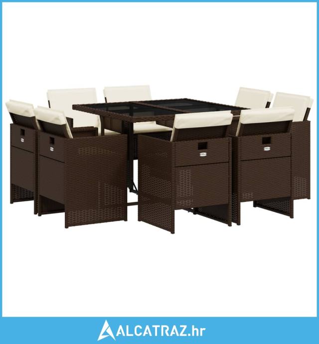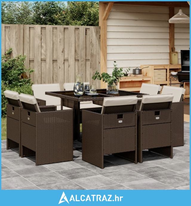 9-dijelni vrtni blagovaonski set s jastucima poliratan smeđi - NOVO