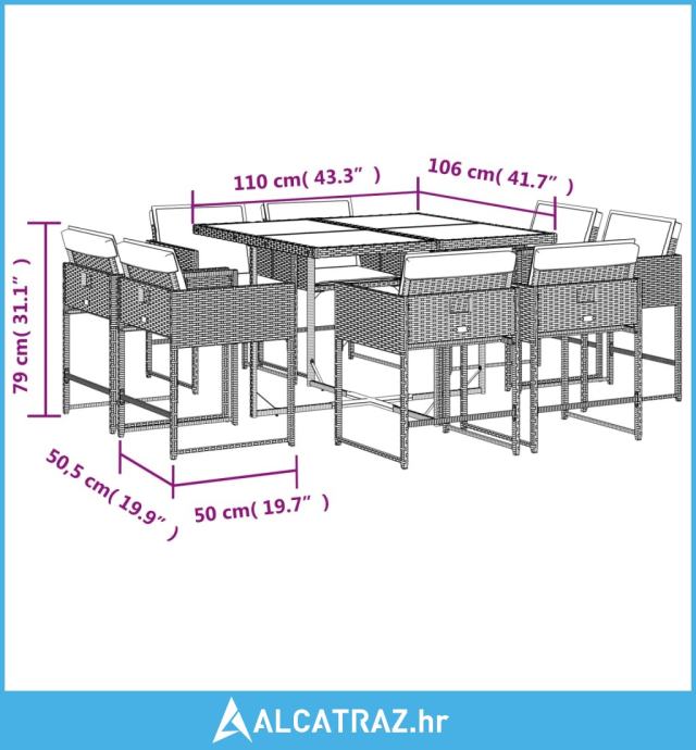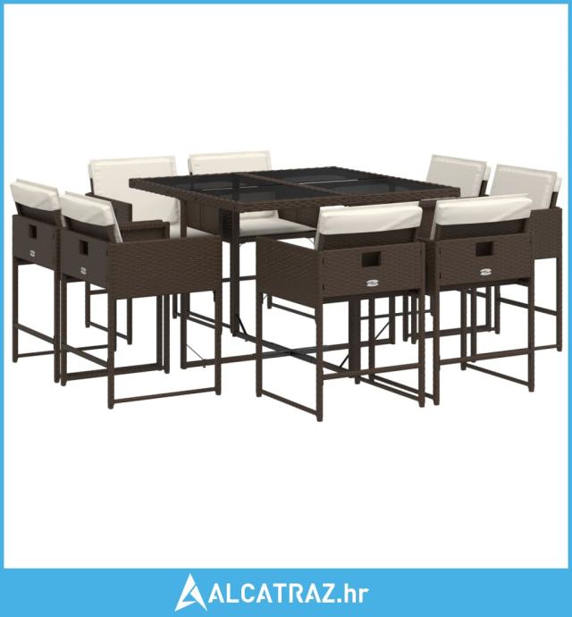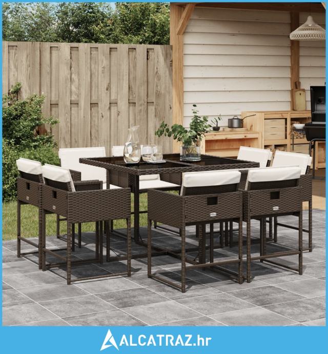 9-dijelni vrtni blagovaonski set s jastucima poliratan smeđi - NOVO