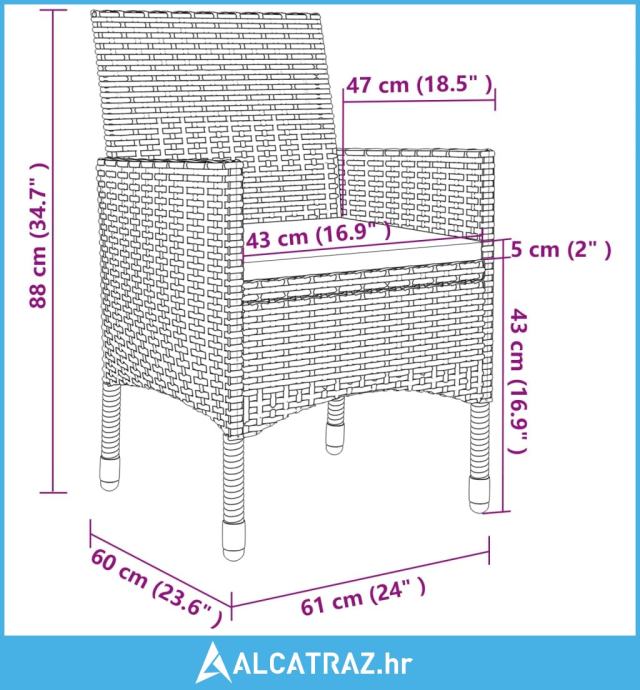 - Dimenzije stolice: 61 x 60 x 88 cm (Š x D x V)