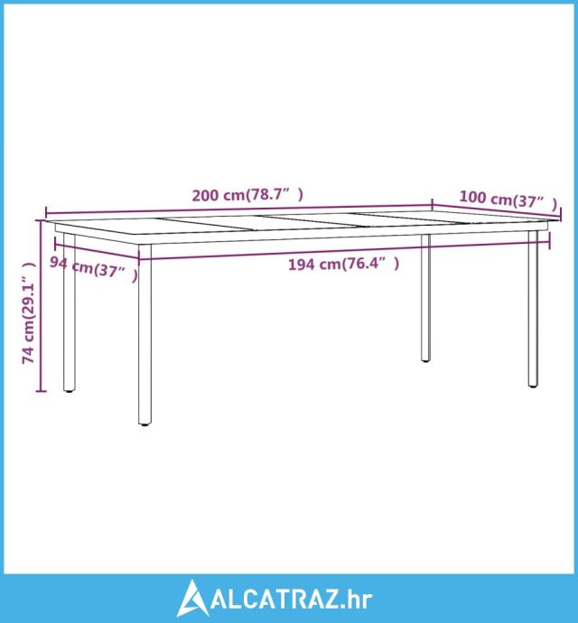 - Dimenzije stola: 200 x 100 x 74 cm (D x Š x V)