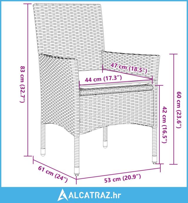 - Materijal: Ratan od PE-a, čelik obložen prahom