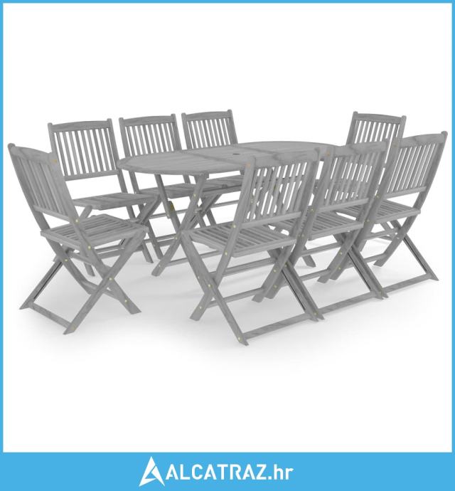 9-dijelni vrtni blagovaonski set masivno bagremovo drvo sivi - NOVO