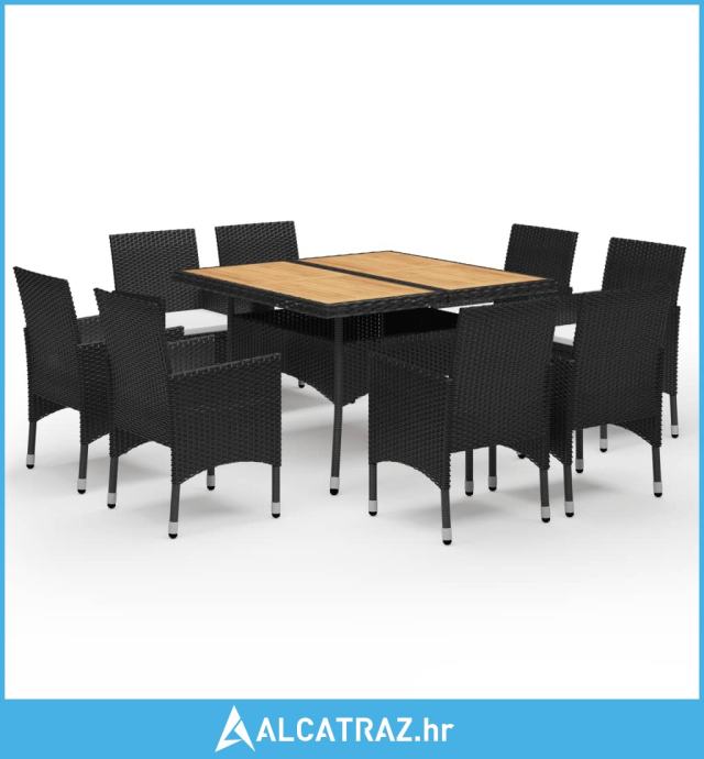 9-dijelni vrtni blagovaonski set poliratan i drvo bagrema crni - NOVO