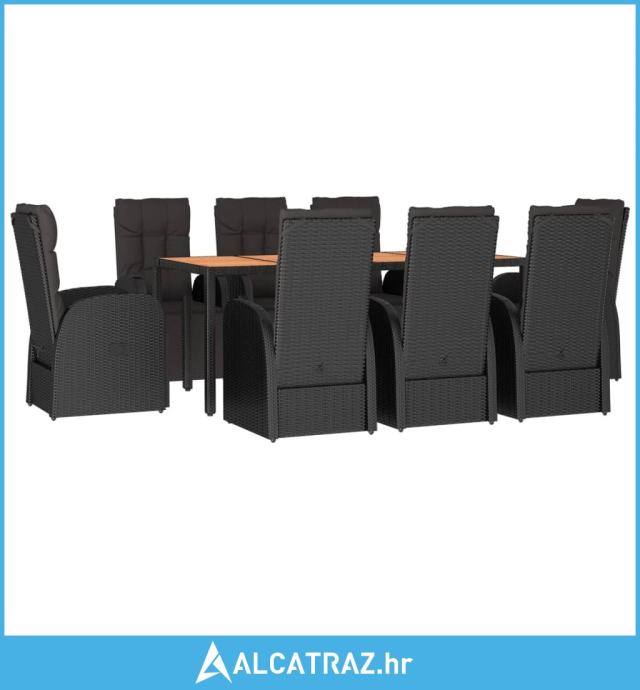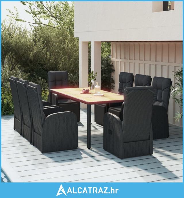 9-dijelni vrtni blagovaonski set poliratan i drvo bagrema crni - NOVO