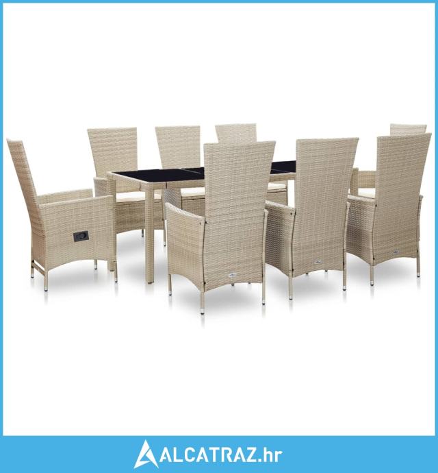 9-dijelni vrtni blagovaonski set od poliratana s jastucima bež - NOVO