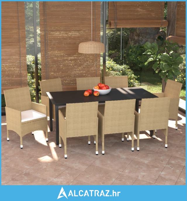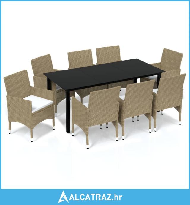 9-dijelni vrtni blagovaonski set od poliratana s jastucima bež - NOVO