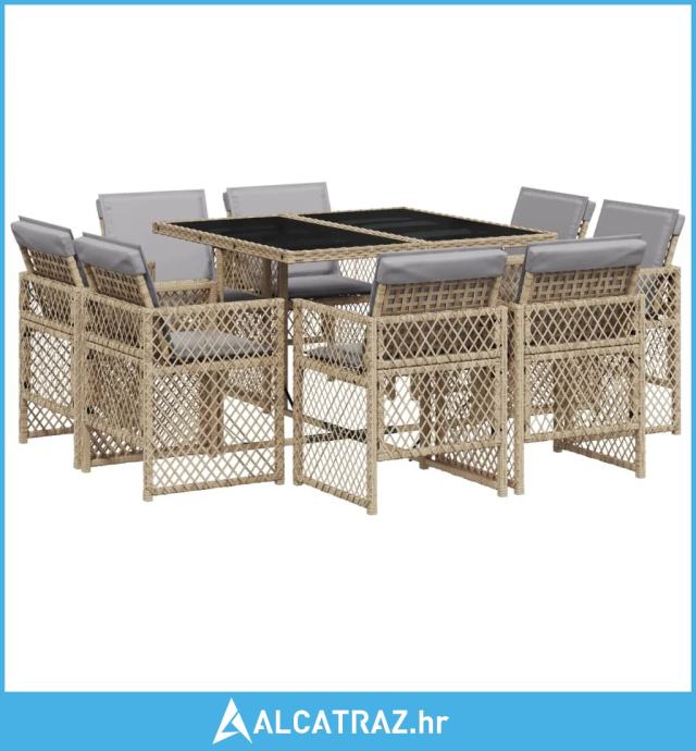 9-dijelni vrtni blagovaonski set od poliratana s jastucima bež - NOVO