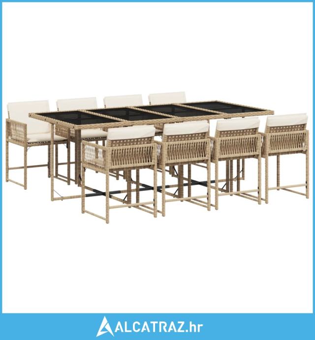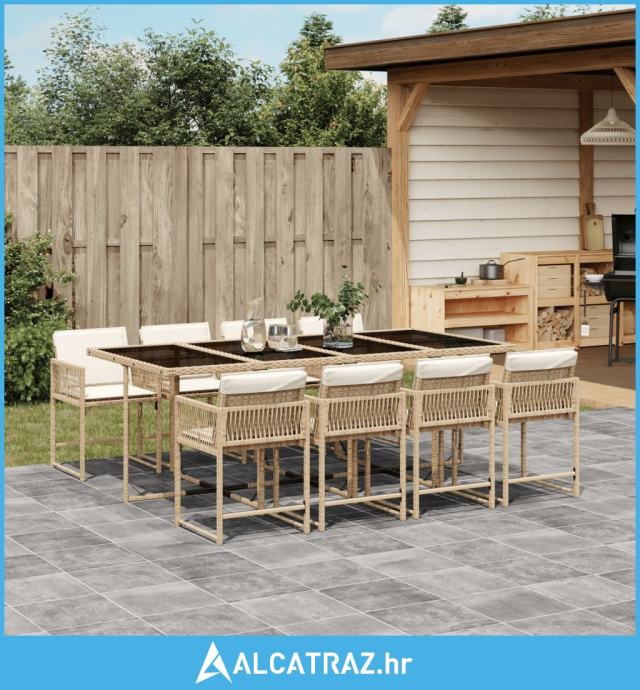 9-dijelni vrtni blagovaonski set od poliratana s jastucima bež - NOVO