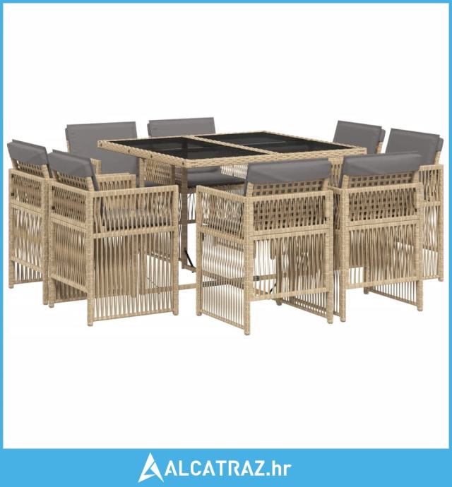 9-dijelni vrtni blagovaonski set od poliratana s jastucima bež - NOVO