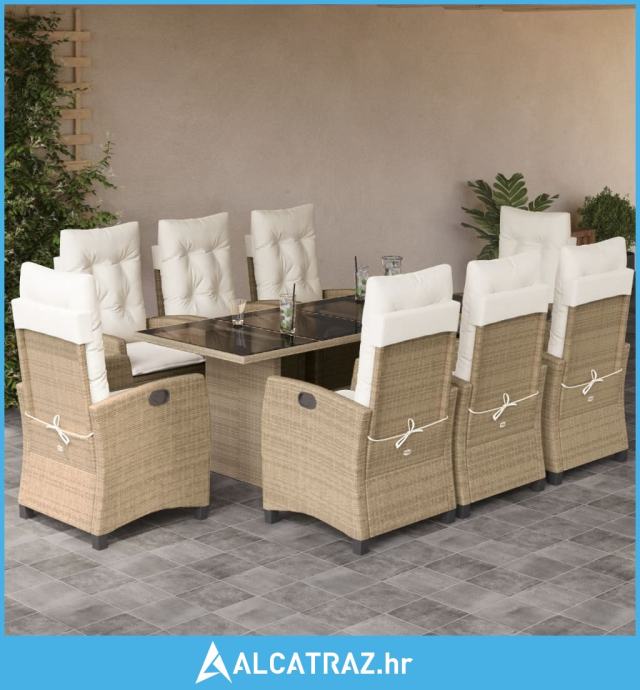 9-dijelni vrtni blagovaonski set od poliratana s jastucima bež - NOVO