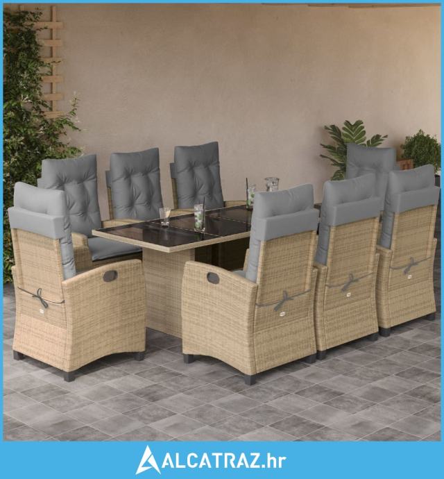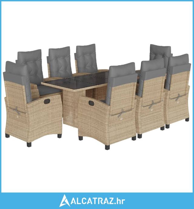 9-dijelni vrtni blagovaonski set od poliratana s jastucima bež - NOVO