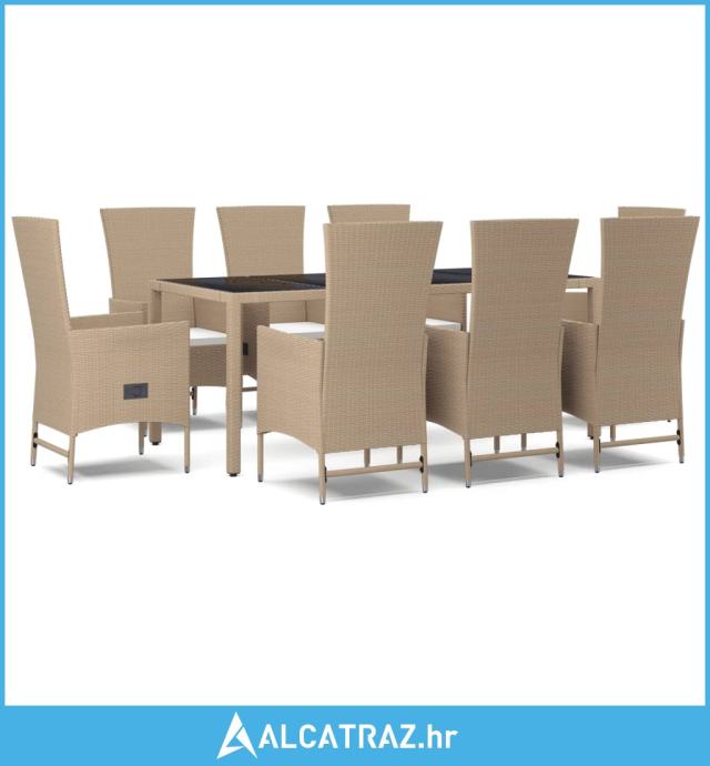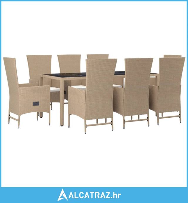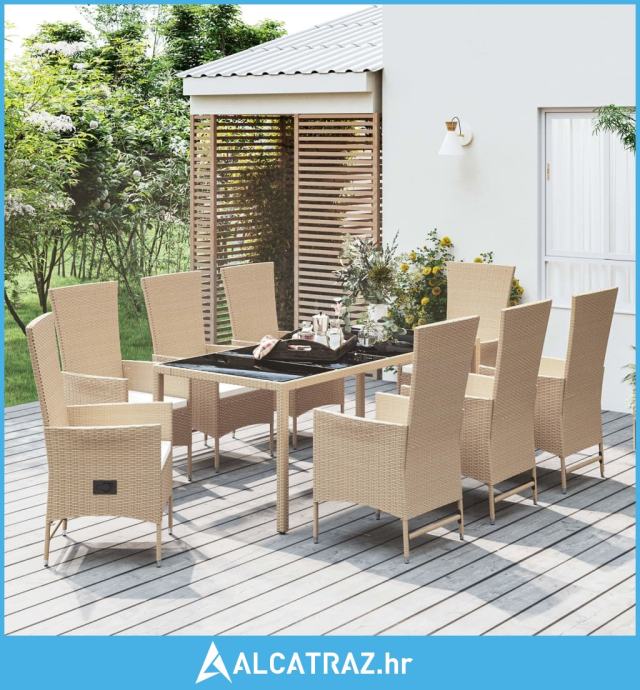 9-dijelni vrtni blagovaonski set od poliratana s jastucima bež - NOVO