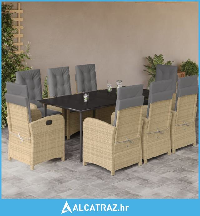 9-dijelni vrtni blagovaonski set od poliratana s jastucima bež - NOVO