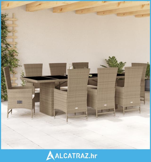 9-dijelni vrtni blagovaonski set od poliratana s jastucima bež - NOVO