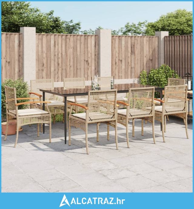 9-dijelni vrtni blagovaonski set od poliratana s jastucima bež - NOVO