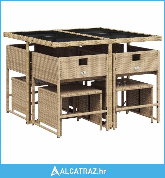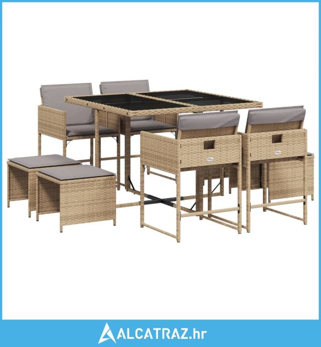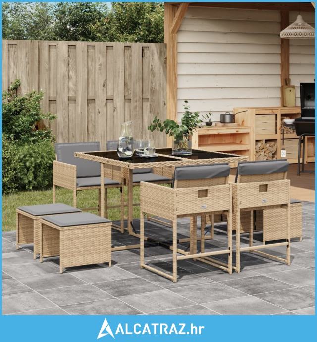 9-dijelni vrtni blagovaonski set od poliratana s jastucima bež - NOVO
