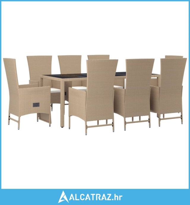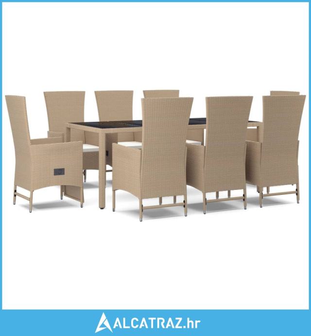 9-dijelni vrtni blagovaonski set od poliratana s jastucima bež - NOVO