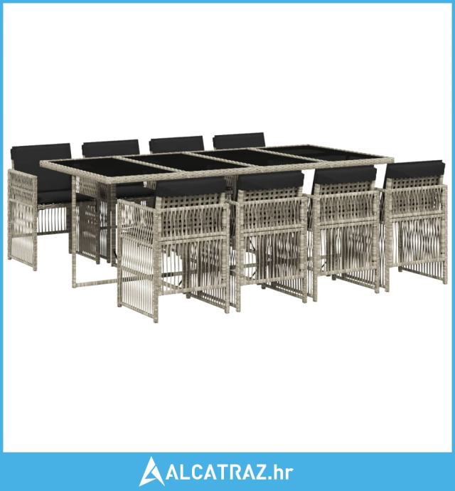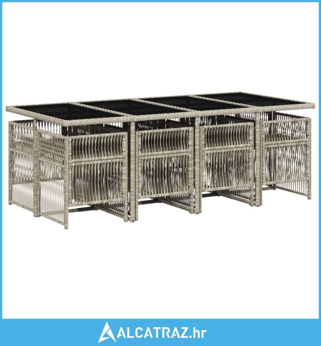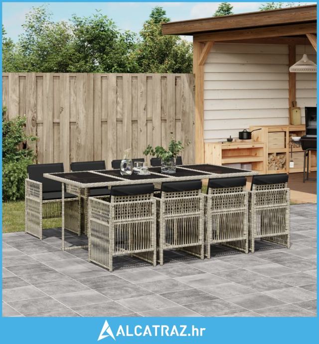 9-dijelni vrtni blagovaonski set od poliratana s jastucima sivi - NOVO