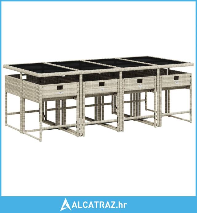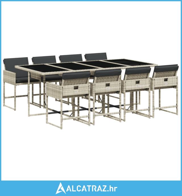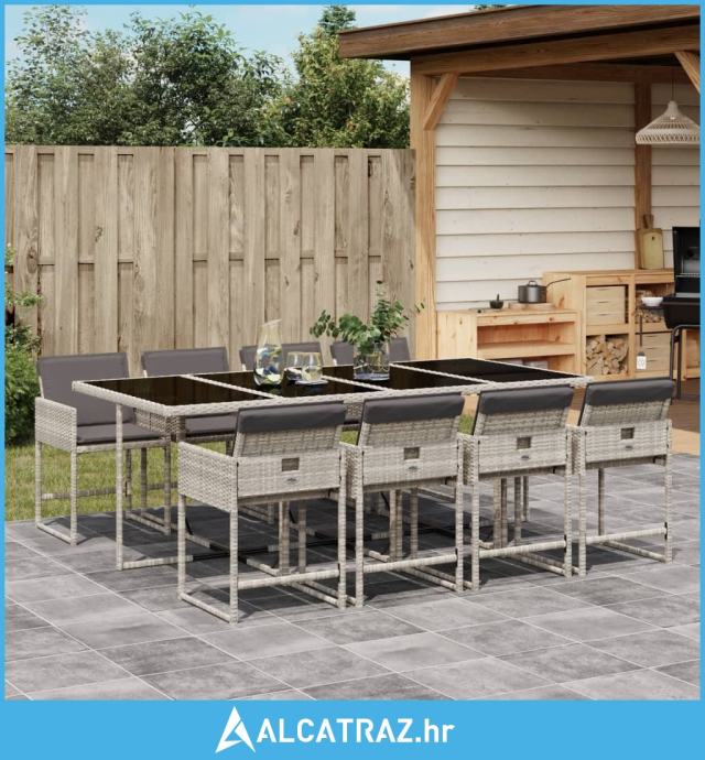 9-dijelni vrtni blagovaonski set od poliratana s jastucima sivi - NOVO