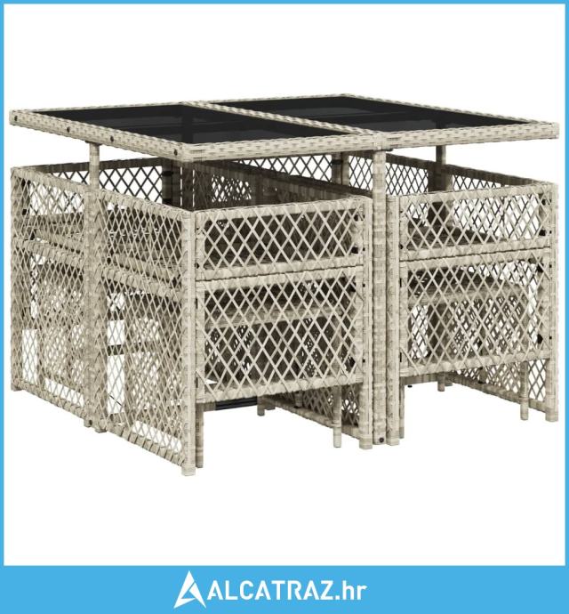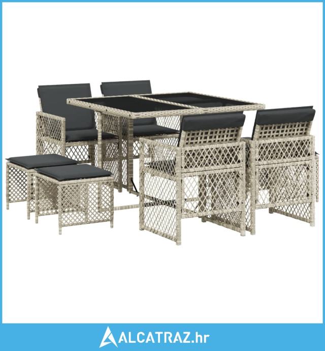 9-dijelni vrtni blagovaonski set od poliratana s jastucima sivi - NOVO