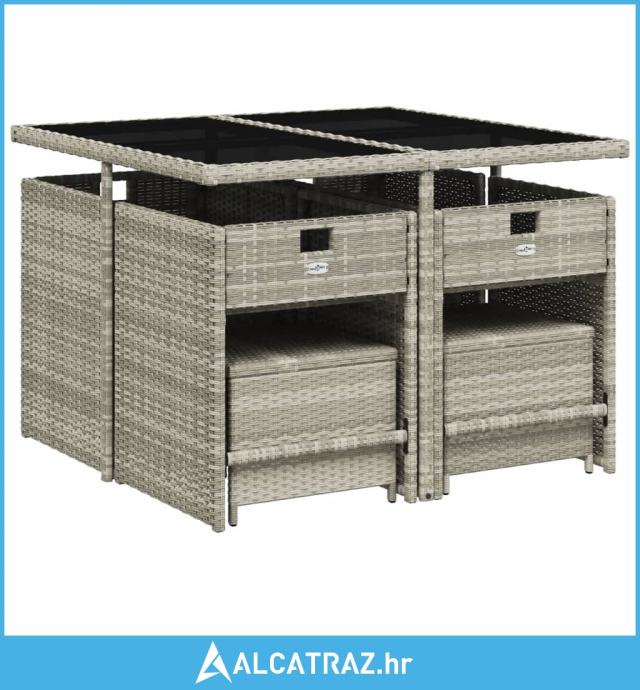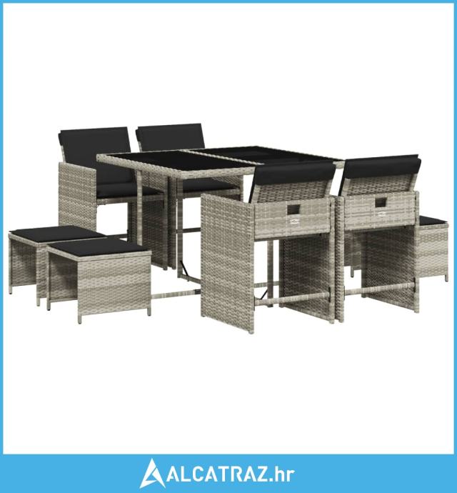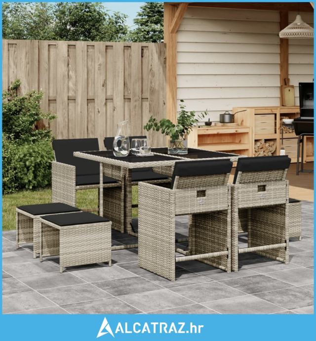 9-dijelni vrtni blagovaonski set od poliratana s jastucima sivi - NOVO
