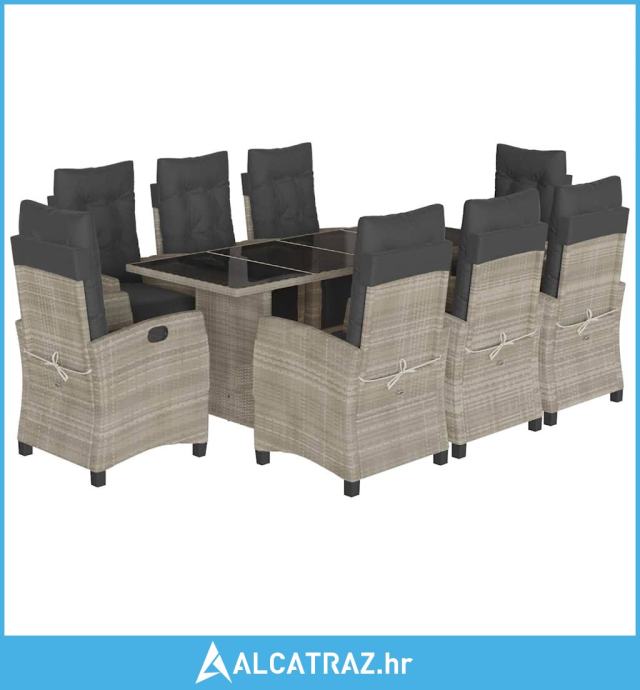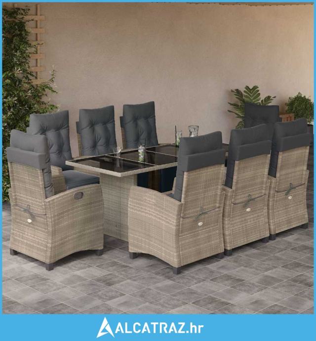9-dijelni vrtni blagovaonski set od poliratana s jastucima sivi - NOVO