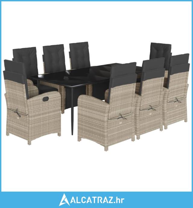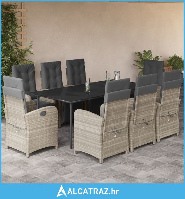 9-dijelni vrtni blagovaonski set od poliratana s jastucima sivi - NOVO