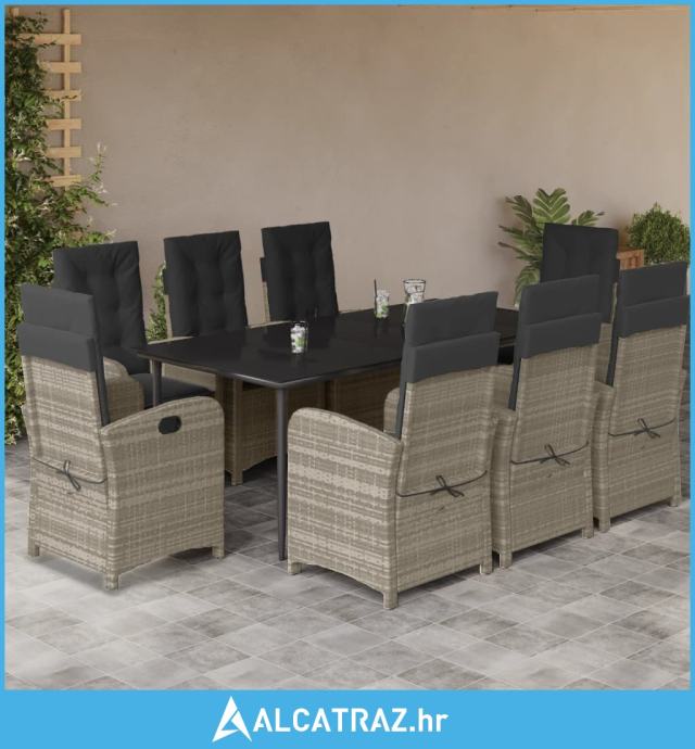 9-dijelni vrtni blagovaonski set od poliratana s jastucima sivi - NOVO