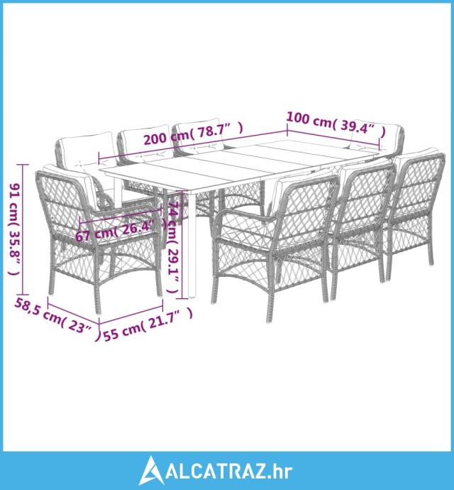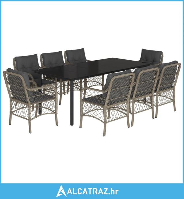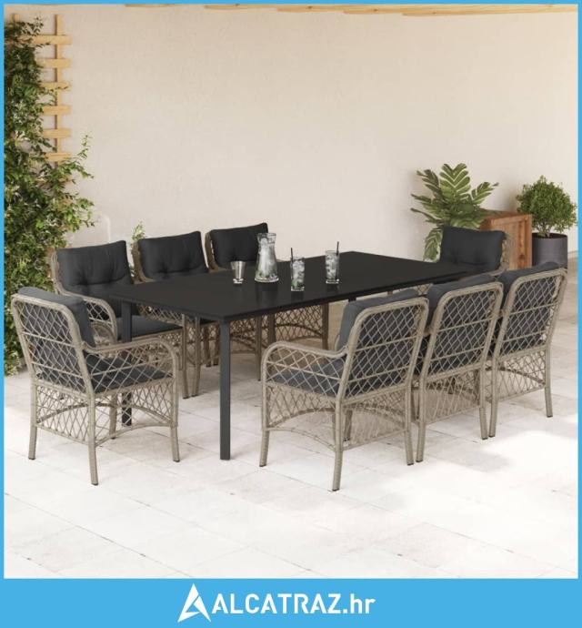 9-dijelni vrtni blagovaonski set od poliratana s jastucima sivi - NOVO