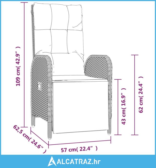 - Dimenzije u sjedećem položaju: 57 x 62,5 x 109 cm (Š x D x V)