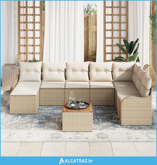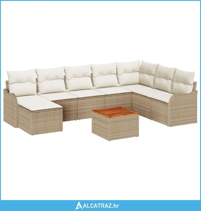 9-dijelni vrtni kauč set s jastučićima bež poli ratan acacia, 2-sjedal