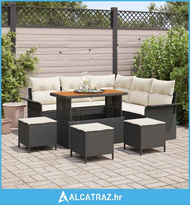 9-dijelni vrtni kauč set s jastučićima crni poli ratan acacia - NOVO