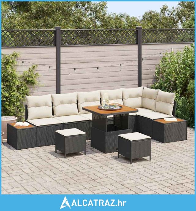 9-dijelni vrtni kauč set s jastučićima crni poli ratan akacija - NOVO