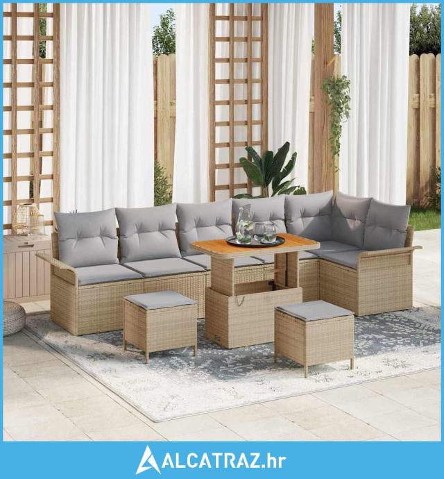 9-dijelni vrtni kauč set s jastucima Bež poli ratan acacia - NOVO
