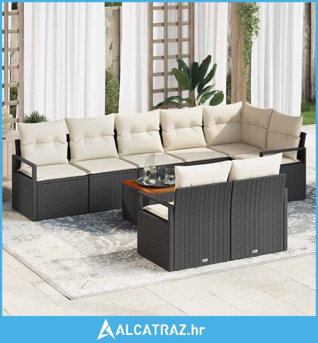 9-dijelni vrtni set za kauč s jastučićima crni poli ratan akacija, 2-s