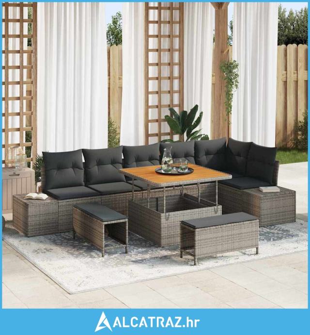 9-dijelni vrtni set kauča s jastučićima sivi poli ratan akacija - NOVO