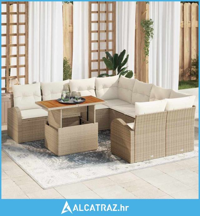 9-dijelni vrtni set za objedovanje s jastučićima Bež Poli ratan akacij