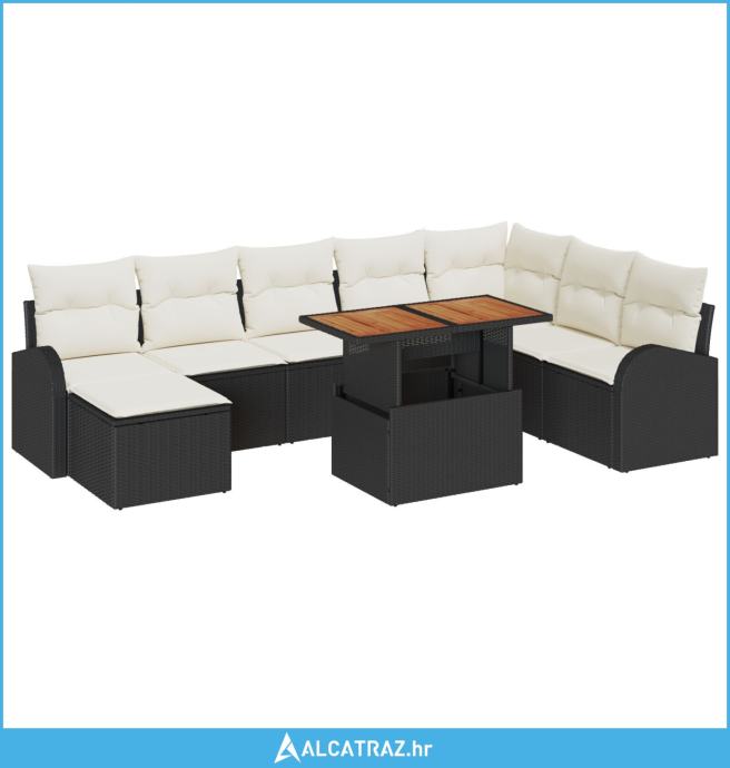 9-dijelni vrtni set za objedovanje s jastučićima crni poli ratan akaci