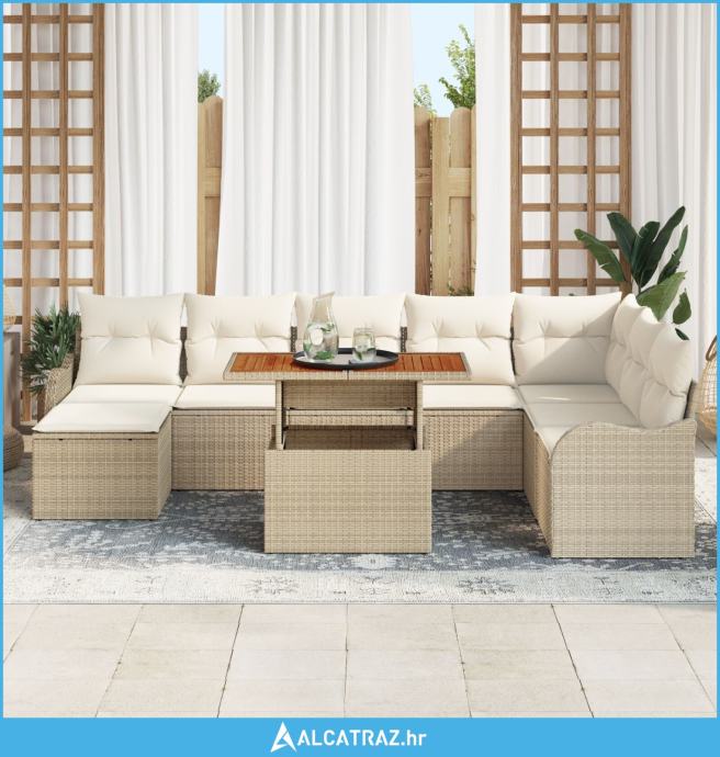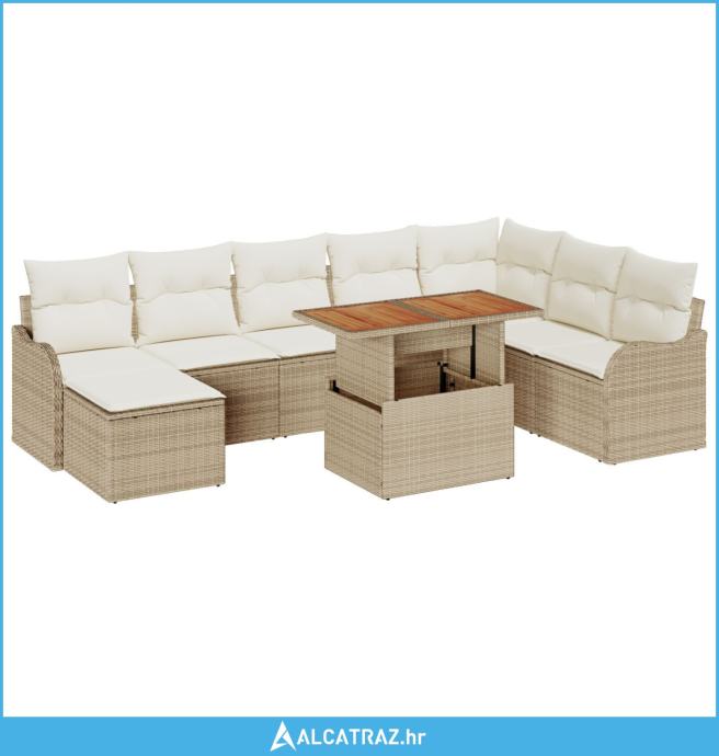 9-dijelni vrtni set sofe s jastučićima bež poli ratan akacija, sofa za