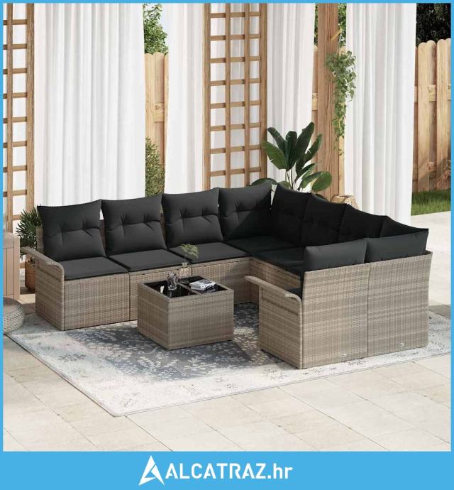 9-dijelni vrtni set sofe s jastučićima svijetlosivi poli ratan - NOVO
