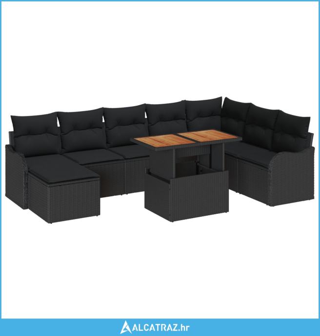 9-dijelni vrtni sof set s jastučićima Crni Poli Ratan Akacija, 2-sjedn