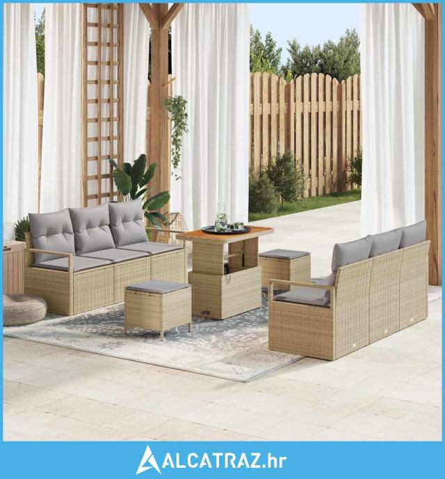 9 Dijelni Vrtni Sofa Set s Jastučićima Bež Poli Ratan Akacija, 2-Sjeda