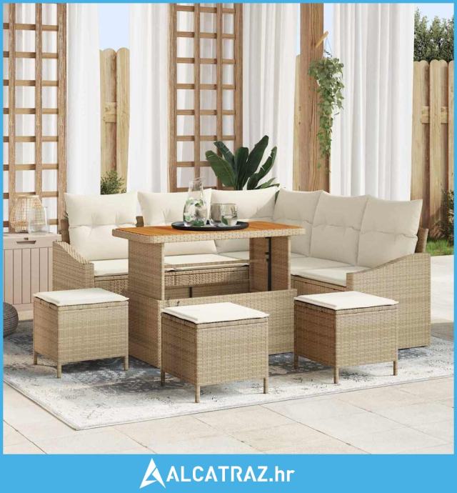 9-dijelni Vrtni Sofa Set s Jastučićima Bež Poli Ratan Akacija - NOVO