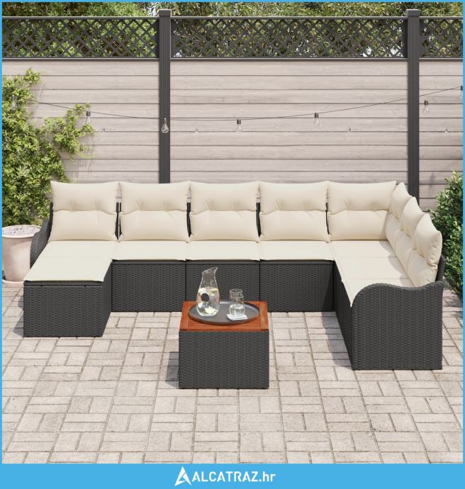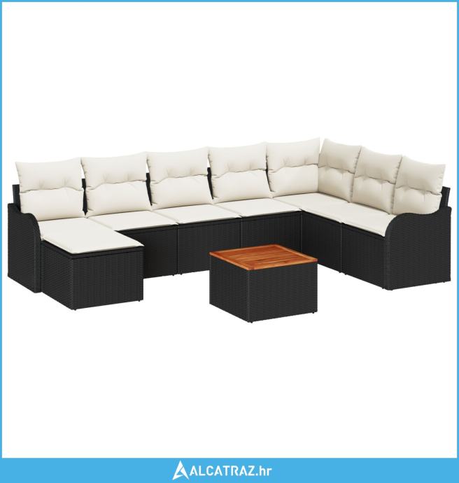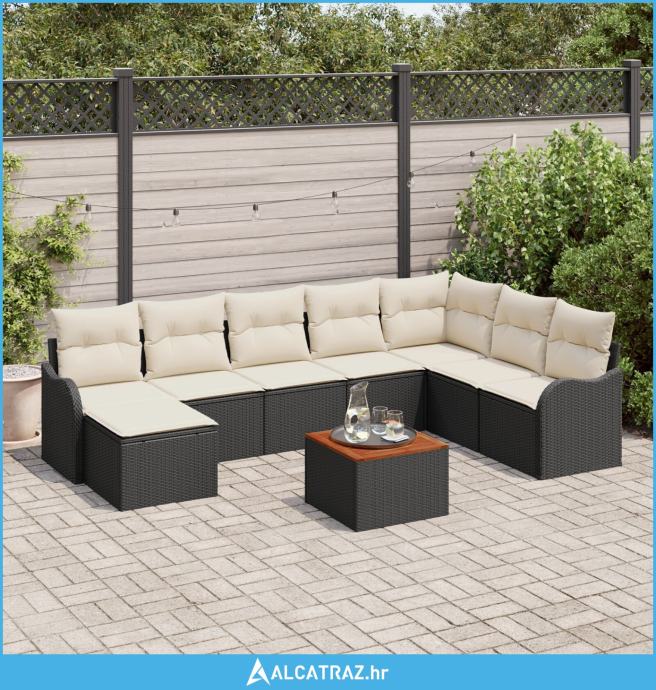 9 dijelni vrtni sofa set s jastučićima Crni poly ratan akacija, 2-sjed