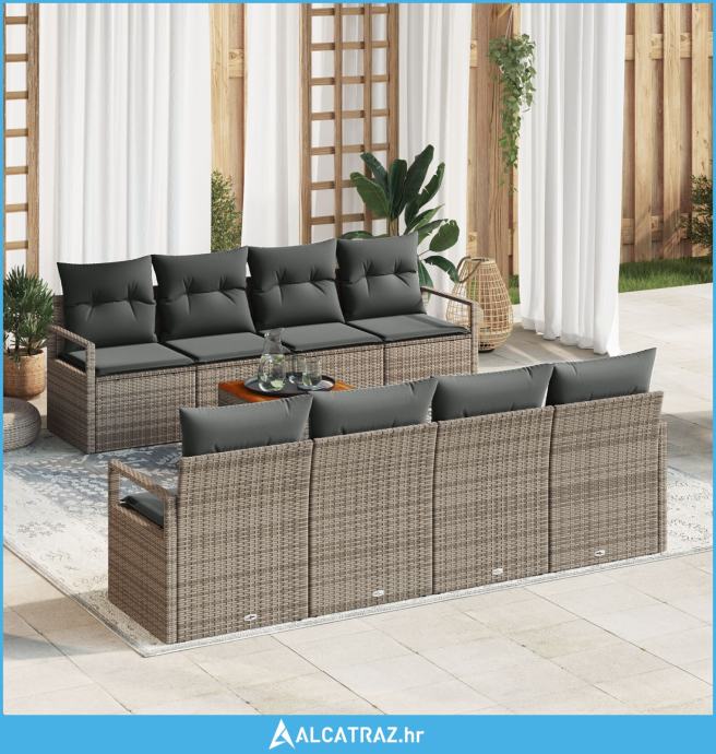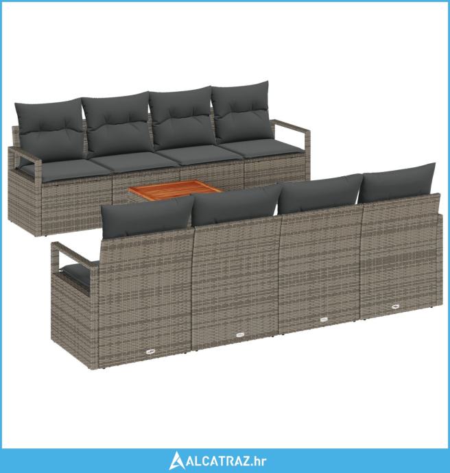 9-dijelni vrtni sofa set s jastučićima siva poli ratan akacija, 2-sjed