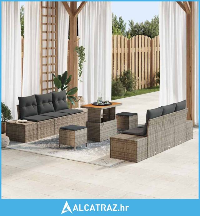 9-dijelni vrtni sofa set s jastučićima siva poli ratan akacija, 2-sjed