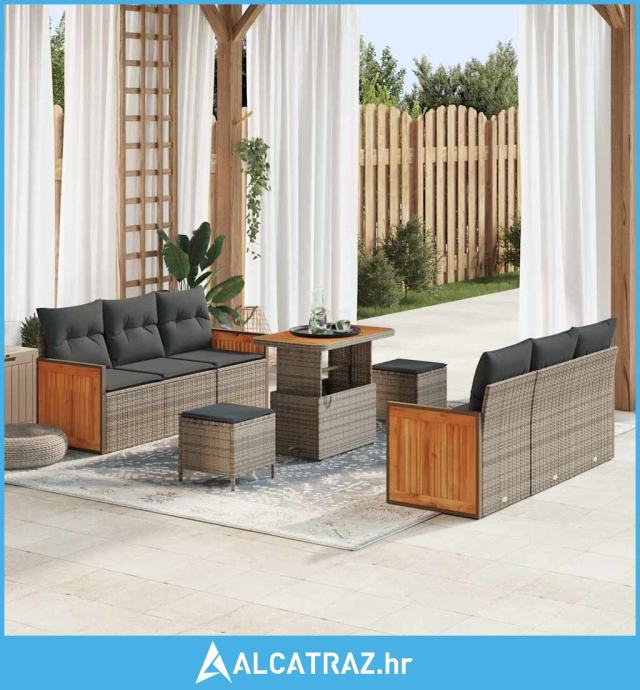 9-dijelni vrtni sofa set s jastučićima siva poli ratan akacija, 2-sjed