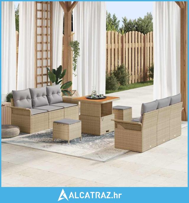 9-dijelni vrtni sofa set s jastucima bež poli ratan akacija, 2-sjedni
