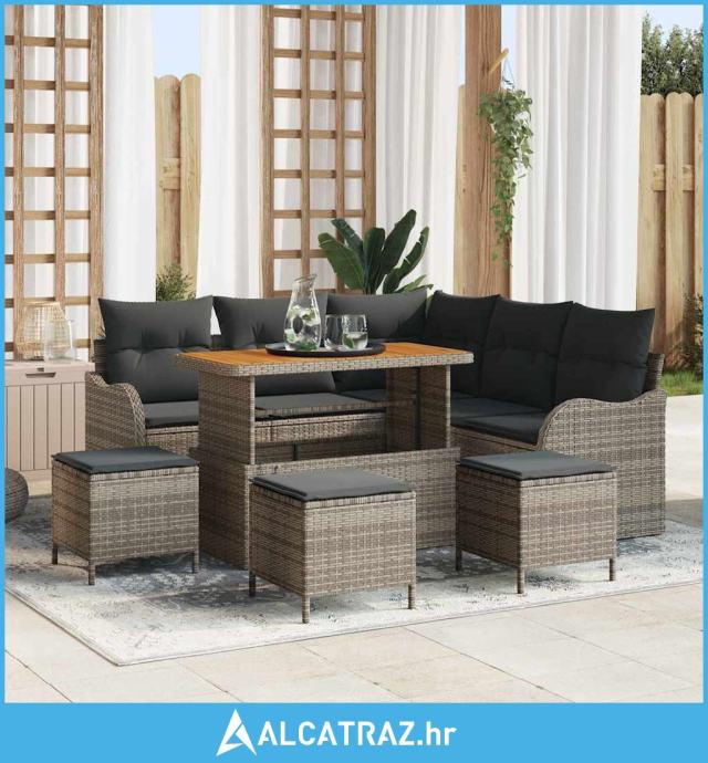 9-dijelni vrtni sofy set s jastučićima sivi poliratan akacija - NOVO