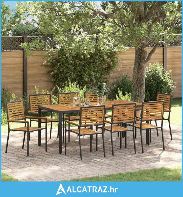 Ovaj prostrani vrtni trgovački set ima moderan izgled, s čvrstim crnim metalnim okvirom i drvenom površinom. Savršeno je za veće vanjske prostore kao što su vrtovi i terase, može ugostiti do osam osoba s odgovarajućim stolicama, što je savršeno za obroke i opuštanje s obitelji i prijateljima.